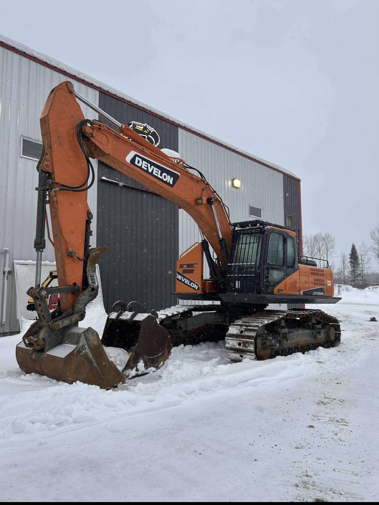 Excavatrice Develon DX225LL récente et performante, conçue pour les travaux forestiers, de manutention lourde et d’excavation spécialisée. Équipée d’une quick attache hydraulique, d’un pouce hydraulique et vendue avec deux buckets, cette machine offre une polyvalence exceptionnelle sur le chantier. Possibilité d’ajouter un peigne, idéale pour les travaux de déboisement, tri et manutention de matériaux. Machine moderne, puissante et en excellente condition, prête à répondre aux exigences professionnelles.