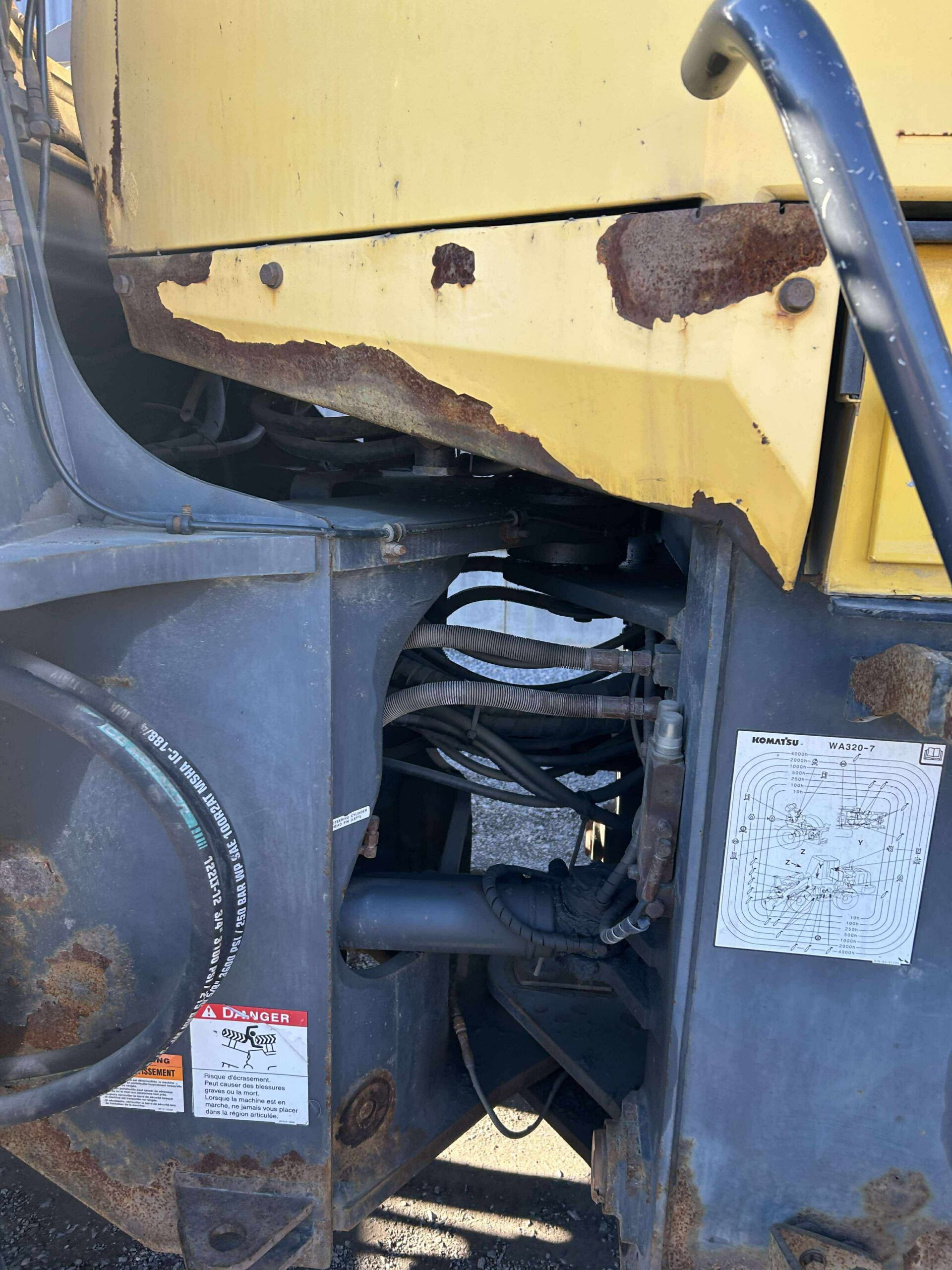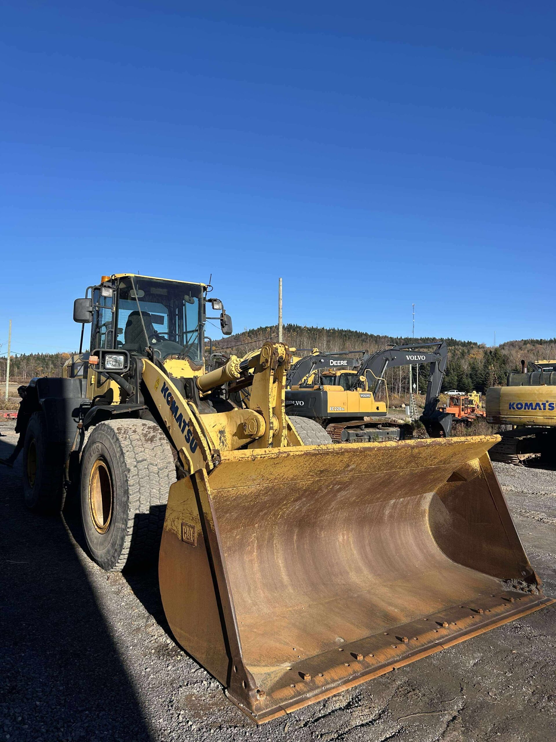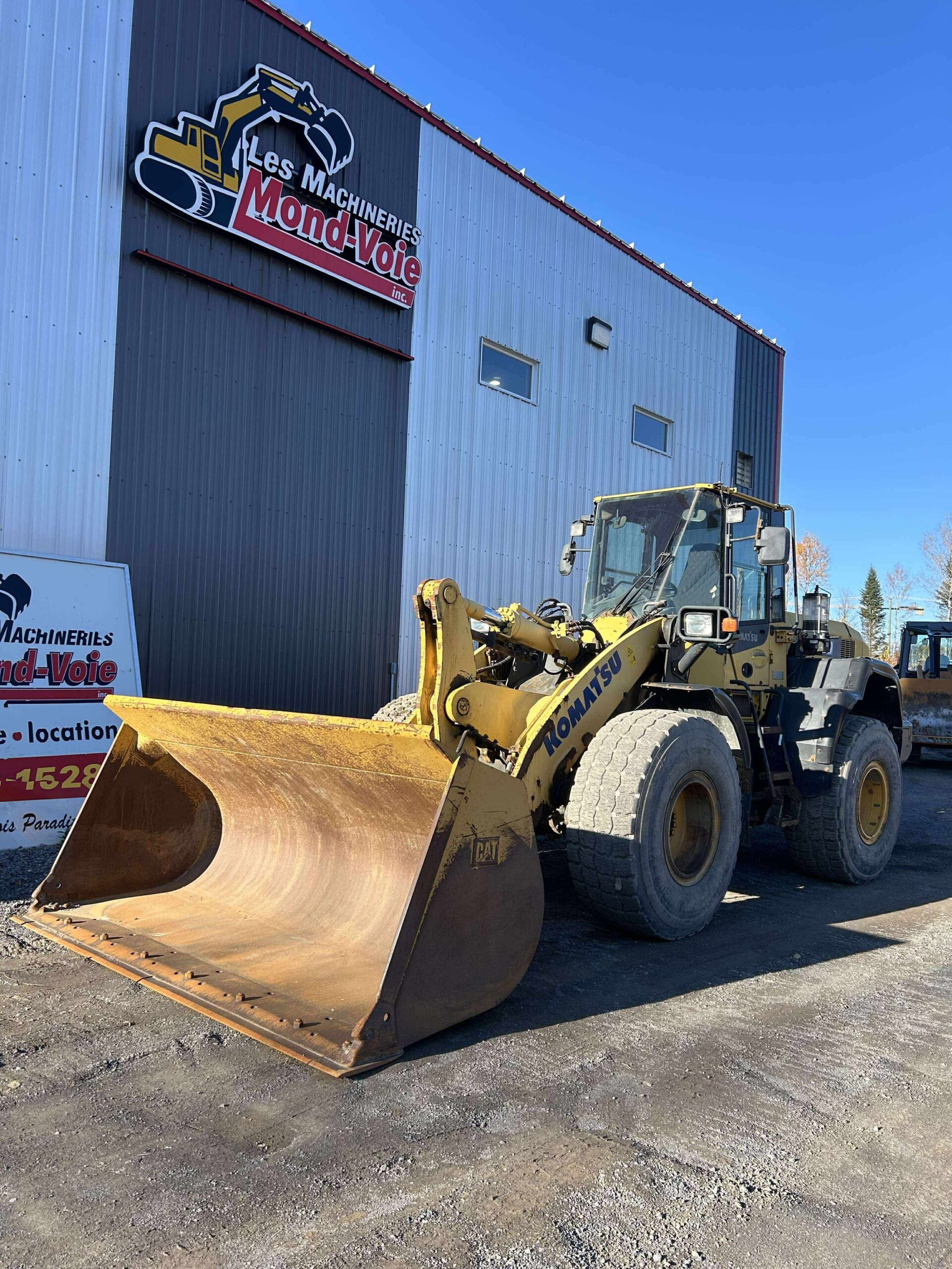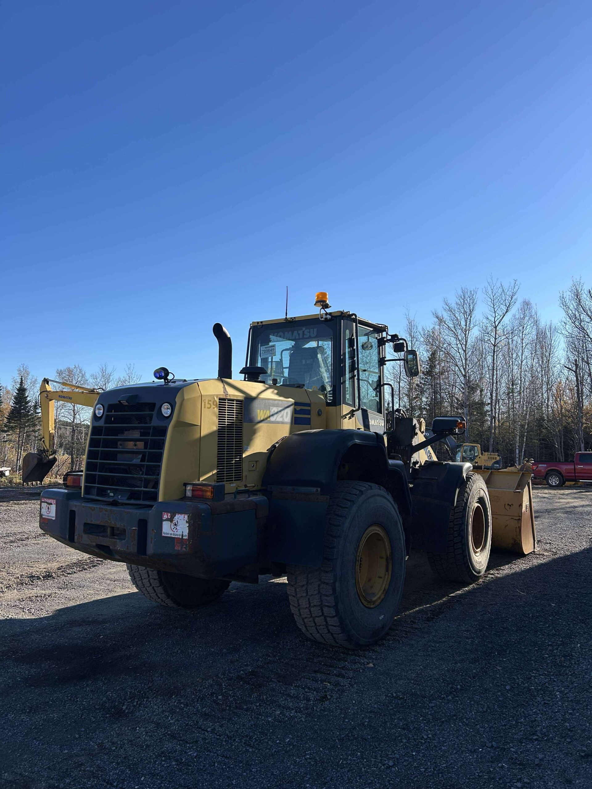 Description du produit: Ce loader Komatsu WA320 est prêt à l’emploi. Il dispose d’un quick attache hydraulique. On y retrouve aussi une sortie auxiliaire pour brancher vos équipements.