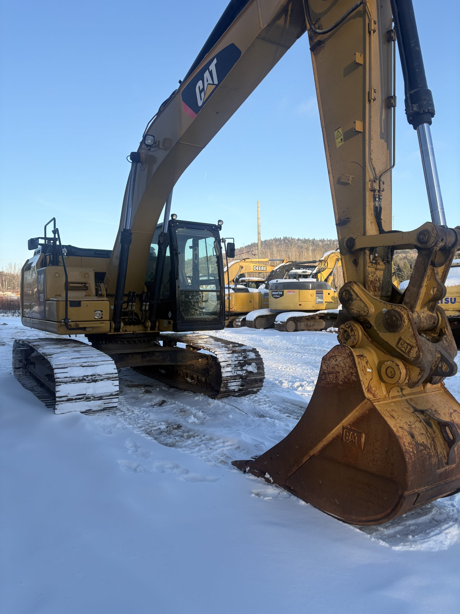 Description du produit: L’excavatrice Caterpillar 320F, modèle 2016, est une machine reconnue pour son efficacité énergétique et ses performances. Elle est équipée d’un quick attache hydraulique pour des changements d’outils rapides et d’un pine grabber (pince à bois ou grappin) qui la rend idéale pour les travaux de foresterie ou de manutention de matériaux longs.